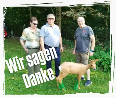 Bereits im Jahr 2024 unterstützte das Unternehmen die Falken mit mehreren hochwertigen 3D-Targets. Nun überreichten Frau und Herr Karas persönlich ein weiteres Zielobjekt – einen detailgetreu gearbeiteten Rehbock – an den 2. Vorsitzenden Helge Moos.